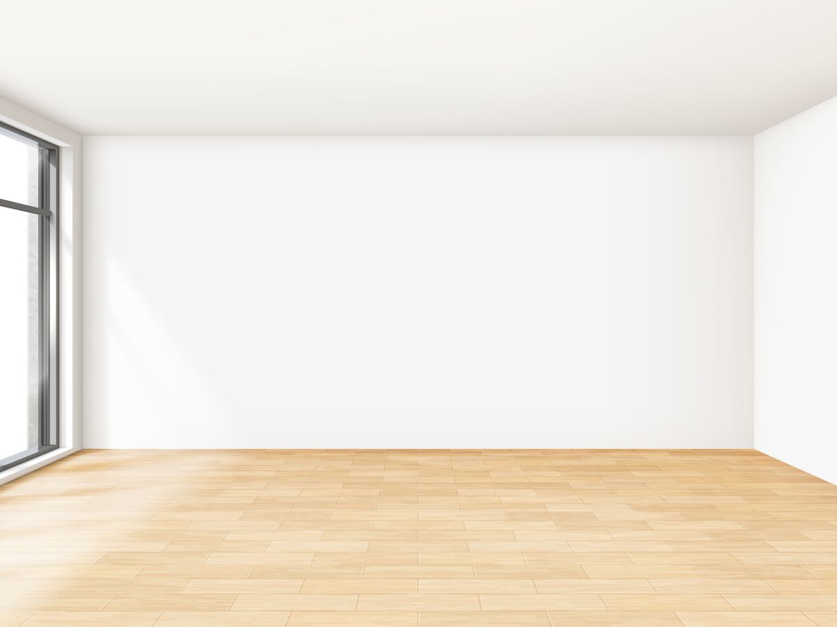Pusty salon, który na miniaturce nie pokazywał potencjału mieszkania